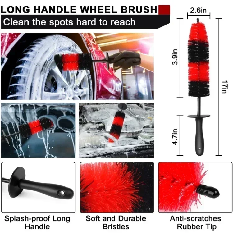 1pcs Car Wheel Rim Tire Cleaning Brush Soft Bristle Cleaner Non Scratch Car Detailing Washing Tool Soft Bristle Cleaner Car Care