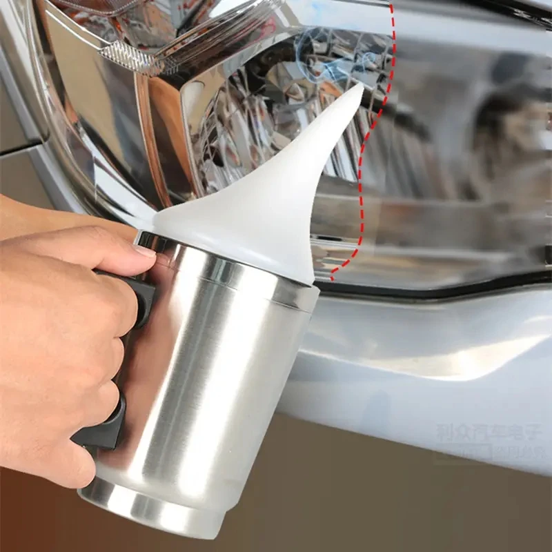 4. Pour the headlight repair solution into the atomizing cup, connect the power cord to the car cigarette lighter interface, and connect the atomizing cup. Just close the lid and get to work.