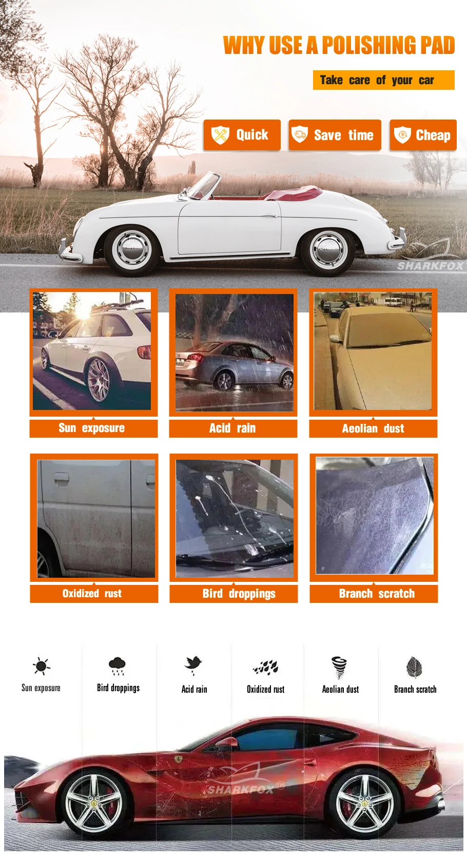 Sharkfox 5/6 inch Car Polishing Disc Profession Pad Polisher Machine Sponge Fast Detailing Wash Wax Mirror Waxing Clean Sponge